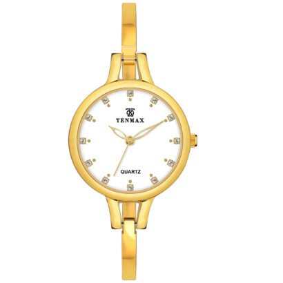 The Tenmax Aura Bangle Quartz S1009 is the epitome of refined sophistication. Designed for women who appreciate style and class, this luxurious analog watch is a perfect accessory for elevating your everyday or special occasion looks. The dazzling white dial combined with sleek gold hues captures attention without overpowering your ensemble. With its delicate yet sturdy design, this timepiece is as durable as it is elegant, making it a worthy investment for your collection.
