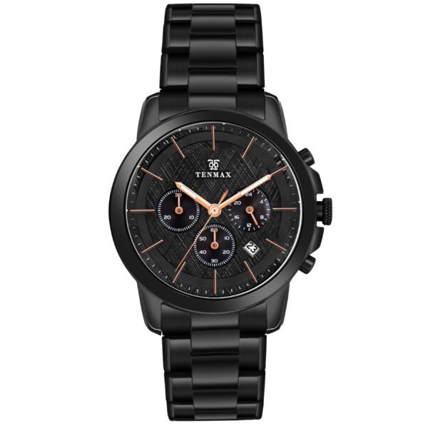 Tenmax Quartz 6121 Multifunction Black Chain Strap Analog Watch
