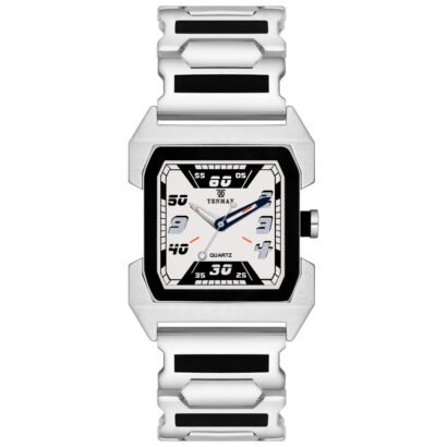 Crafted with meticulous attention to detail, the Tenmax Quartz 1474 features a durable steel metal strap that not only ensures comfort but also adds resilience for long-lasting wear. Its black-coated mirror glass encases the designer white dial in an elegant yet robust frame, creating a harmonious contrast that catches the eye. Every component, from the watch hands to the crown, reflects superior craftsmanship, guaranteeing a product that is as functional as it is stylish.