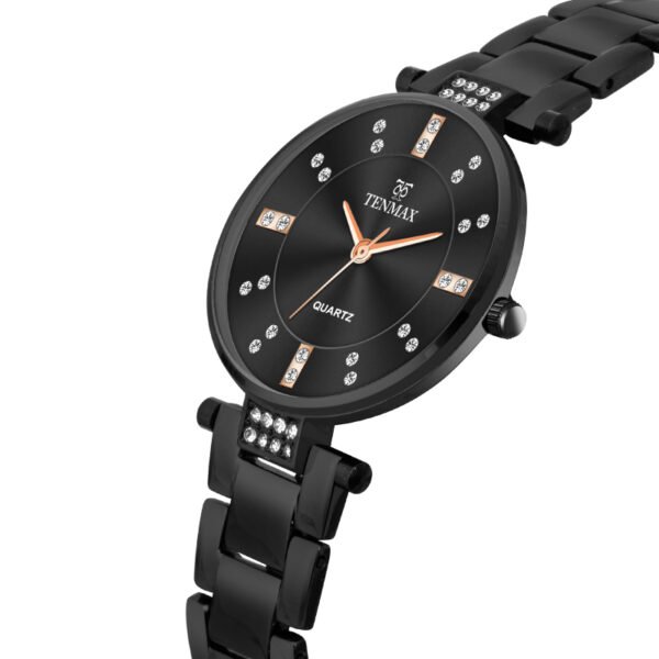 Tenmax Quartz D-13 Elegant Black Dial Black Chain Analog Watch For Women
